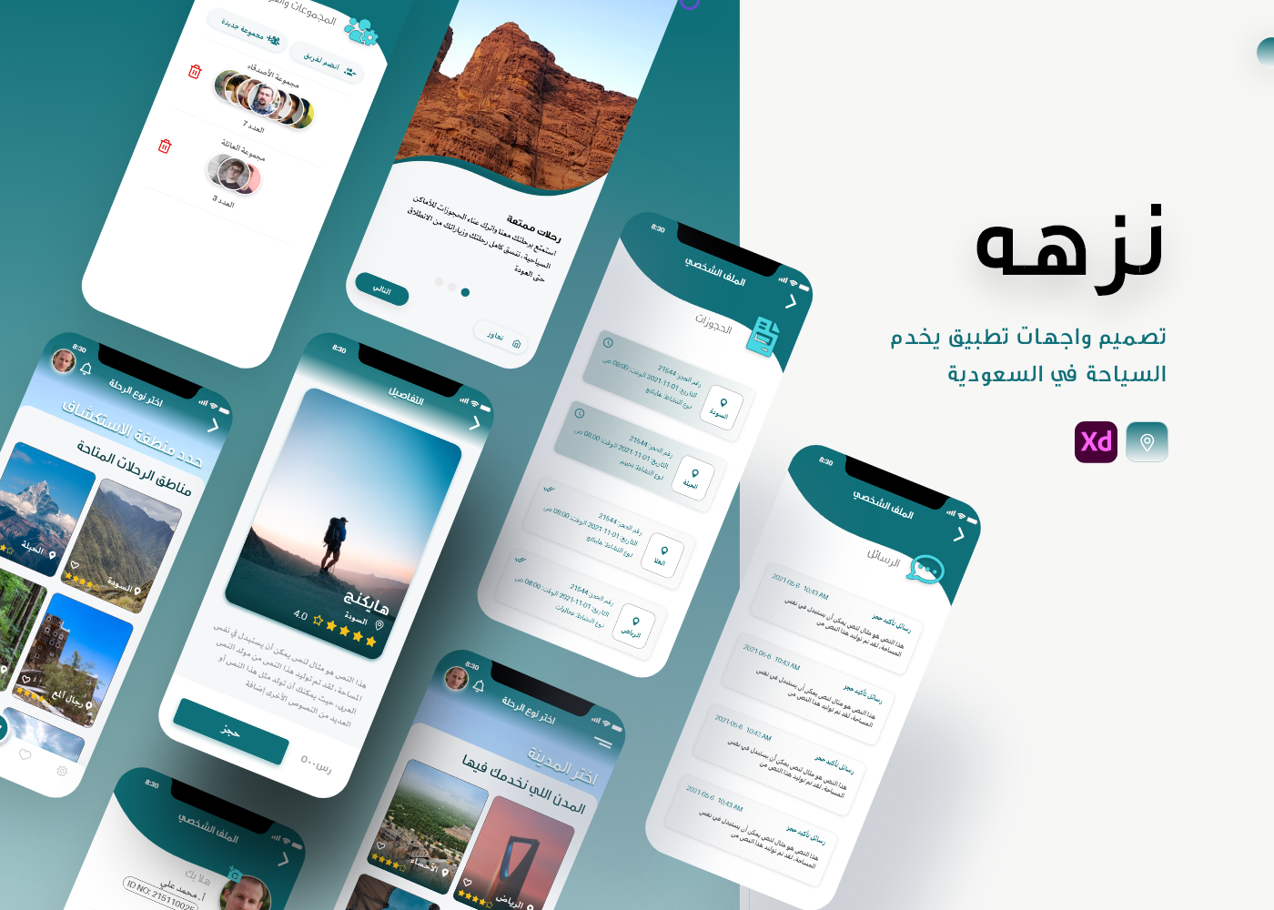 في هذا المشروع صممت واجهات تطبيق “نزهة” بهدف تقديم تجربة سلسة وعصرية لعشاق الاستكشاف والرحلات. ركزت على واجهة أنيقة وسهلة الاستخدام تجمع بين الألوان المبهجة والتدرجات الهادئة، لتعكس روح النزهة والراحة.